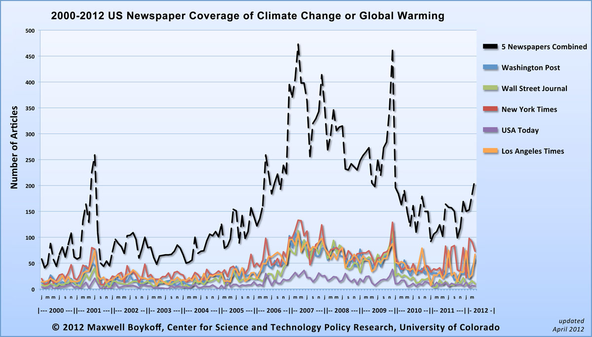 | US newspaper coverage of climate change or global warming 2000-2012 |