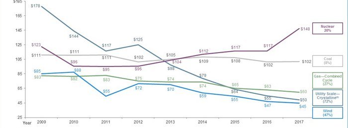 The Cost of Wind and Solar is Now Lower Than Pretty Much Everything Else