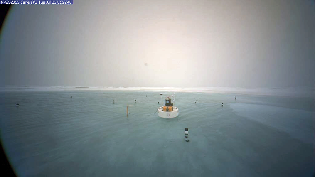 The Live Cam sits on an ice flow that has drifted away from its starting point at the North Pole, and it is now near the 85 degrees meridian. And the water is in fact a large lake, or melt pond, that has formed on the sea-ice. Every summer the sea-ice melts and retreats, so what the image shows is not an unusual event. However, James Overland, a researcher at the National Oceanic and Atmospheric Administration, told Climate Central that the melt pond does seem unusually large compared to what is typically observed in a melt season, though. “We have extensive melt ponds every year, but I do not remember such an extensive lake in previous years. The lake is more a product of how the ice was configured earlier in the year,” he said.